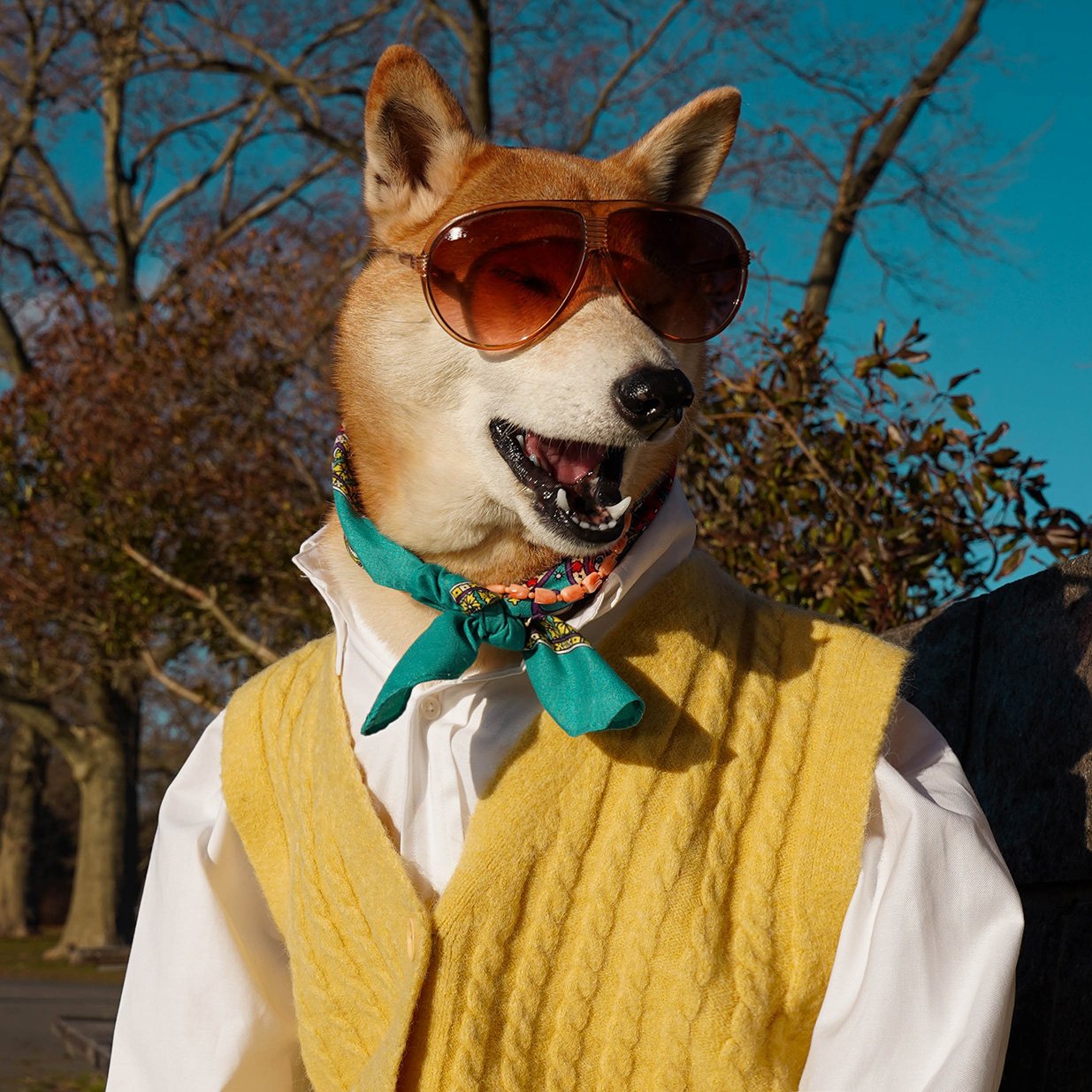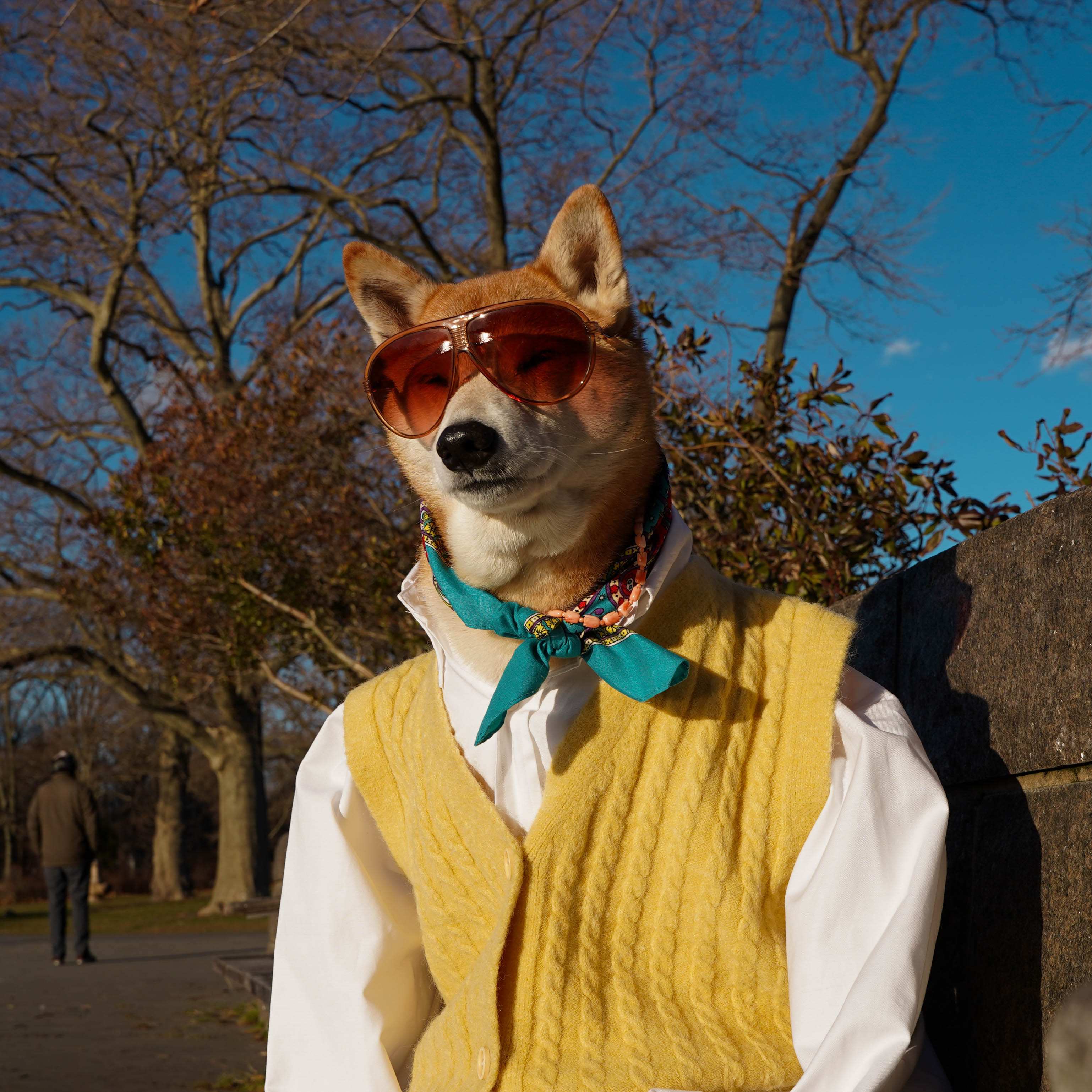 Photographed at his favorite park in Brooklyn (Prospect Park), Bodhi graces the sunshine and blue skies with his ensemble of a crisp white shirt, a vest, paisley bandana, a carved coral necklace and 70's vintage shadesÂ
